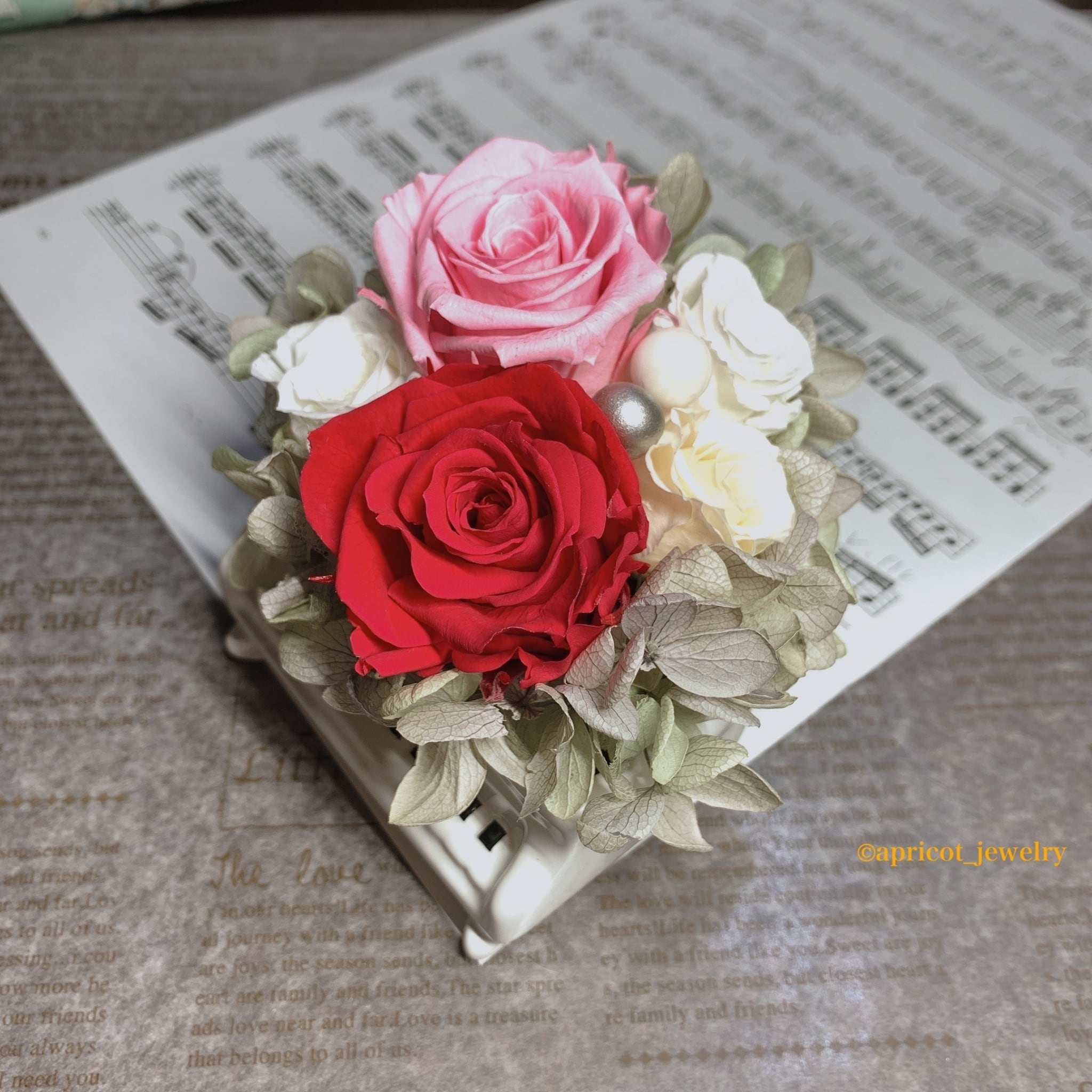 ハンドメイドのオリジナル作品です。音楽とお花が大好きな作者が、お部屋のインテリアにはもちろん演奏会用ギフトとしても喜んでいただけるよう、心を込めて作りました♬︎