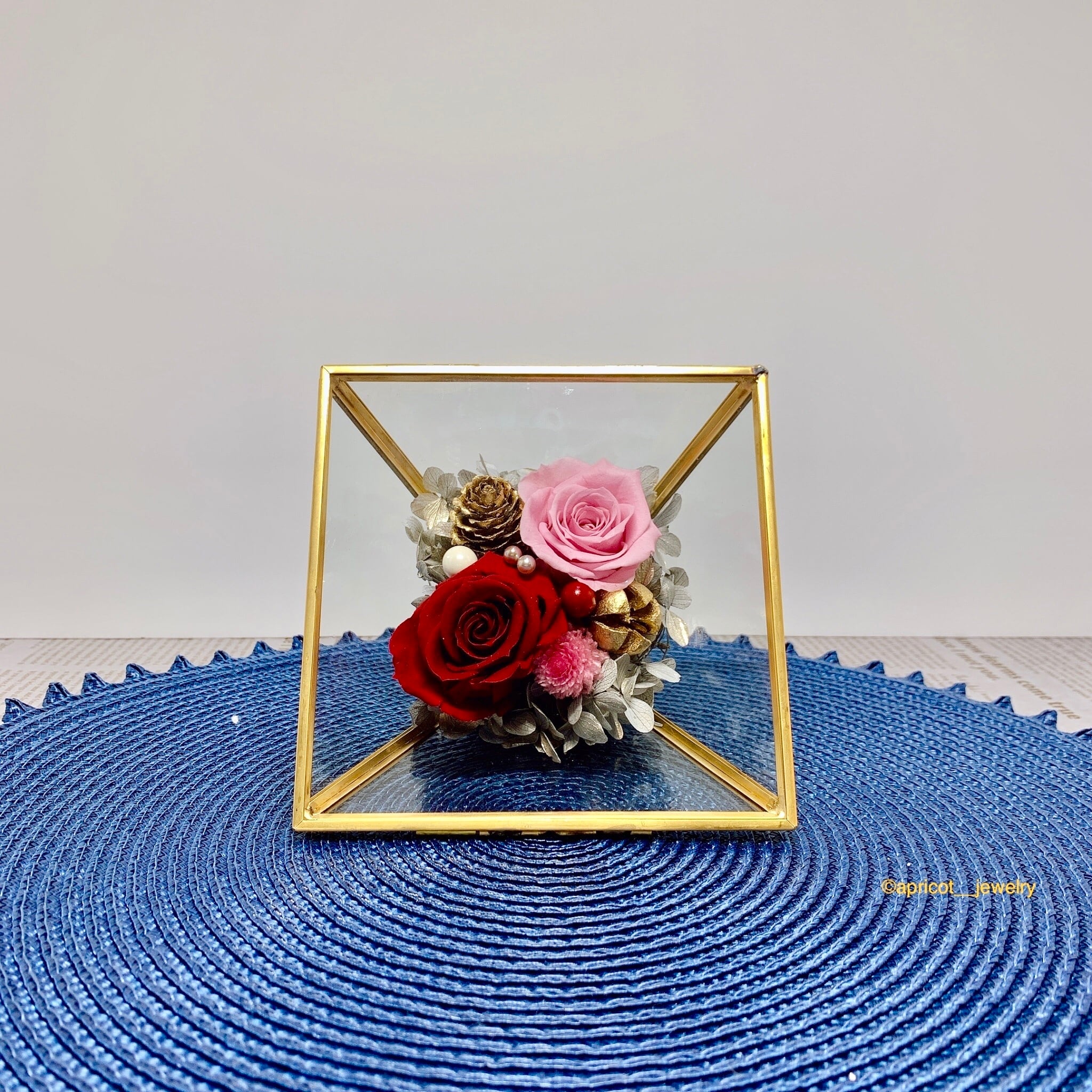 ハンドメイドのオリジナル作品です。お部屋のインテリアにはもちろんギフトとしても喜んでいただけるよう、心を込めて作りました♬︎お花だけでなく淡水真珠の輝きがとっても綺麗です✨蓋は開閉可能です。